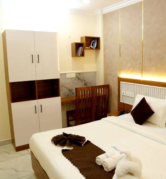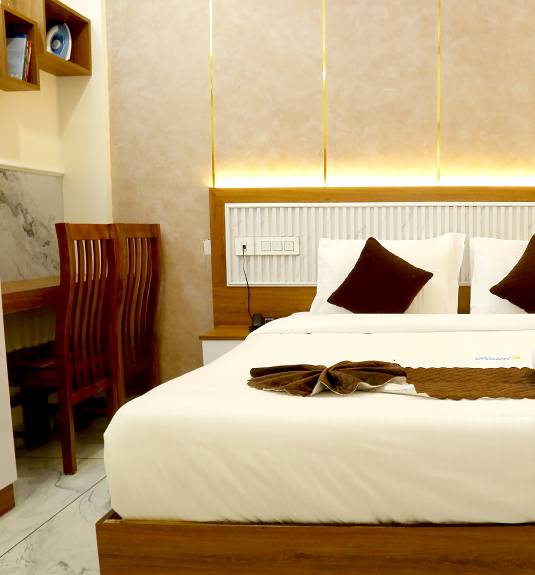 Indulge in the tranquil ambiance of the Lavender Room, a premier Executive Room at Cloud9 Airport Hotel. Offering 148 Sq Ft of elegant living space, this room is centered around a plush Queen Size bed, perfect for recovering from travel fatigue. Located in the heart of Nedumbassery, directly across from Cochin International Airport, the Lavender Room is a sanctuary of peace amidst the travel hub. The decor is subtle and sophisticated, creating a boutique feel that caters to both leisure and business guests. Benefit from modern essentials including high-speed Wi-Fi, a workspace, and climate control to suit your preference. The Lavender Room is designed to provide a premium hospitality experience with a focus on personalized comfort. Our proximity to the airport terminal on VIP Road ensures you never have to worry about traffic or delays. Experience a blend of convenience and class in a room that feels like a private haven, making your visit to Kochi truly memorable and relaxing.