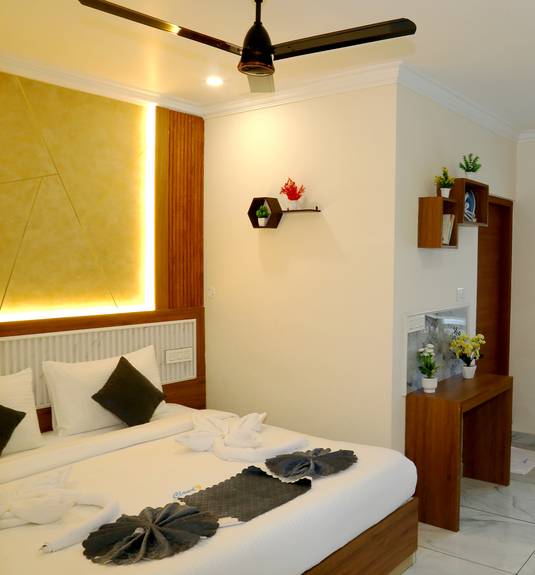 Experience the pinnacle of comfort at Cloud9 Airport Hotel in our Peach Room. As our most spacious offering at 180 Sq Ft, this room is designed for travelers who refuse to compromise on space. Centered around a plush Queen Size bed with premium linens, the room provides a serene sanctuary just minutes away from the bustle of Cochin International Airport. The highlight of the Peach Room is its private, airy balcony, offering a perfect spot to enjoy your morning coffee or the evening breeze on VIP Road. Whether you are in Nedumbassery for a long layover or a business trip, this room features high-speed Wi-Fi, air conditioning, and a modern en-suite bathroom. The elegant interior palette creates a warm, welcoming glow that ensures a restful night's sleep. Choose the Peach Room for a premium stay that combines the convenience of an airport hotel with the luxury of a boutique retreat. It is the ideal choice for those seeking extra room to breathe and relax.