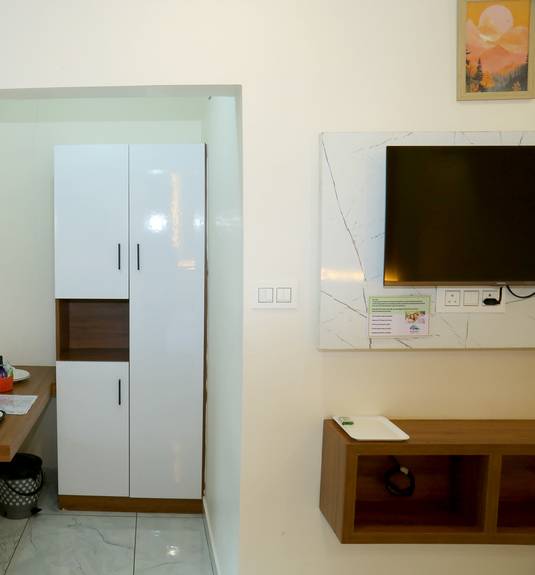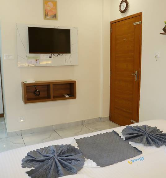 Experience the pinnacle of comfort at Cloud9 Airport Hotel in our Peach Room. As our most spacious offering at 180 Sq Ft, this room is designed for travelers who refuse to compromise on space. Centered around a plush Queen Size bed with premium linens, the room provides a serene sanctuary just minutes away from the bustle of Cochin International Airport. The highlight of the Peach Room is its private, airy balcony, offering a perfect spot to enjoy your morning coffee or the evening breeze on VIP Road. Whether you are in Nedumbassery for a long layover or a business trip, this room features high-speed Wi-Fi, air conditioning, and a modern en-suite bathroom. The elegant interior palette creates a warm, welcoming glow that ensures a restful night's sleep. Choose the Peach Room for a premium stay that combines the convenience of an airport hotel with the luxury of a boutique retreat. It is the ideal choice for those seeking extra room to breathe and relax.