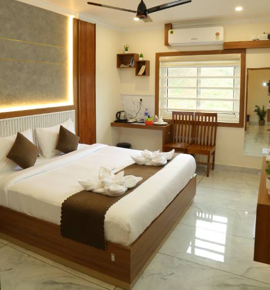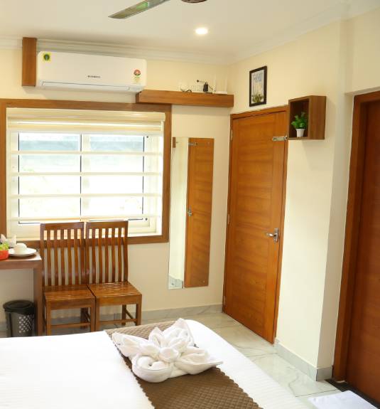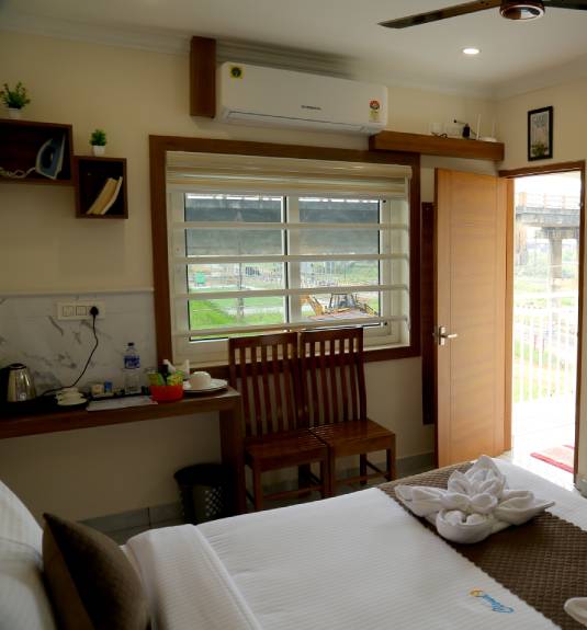 The Pine Room is a testament to modern hospitality, offering a seamless stay for visitors to Nedumbassery. This 150 Sq Ft room is equipped with a sturdy and comfortable Queen Size bed, ensuring you wake up refreshed for your flight or meetings. The inclusion of a private balcony allows guests to step out and enjoy the local atmosphere, providing a sense of openness rare in airport transit hotels. Strategically located at Cloud9 Airport Hotel, right across from Cochin International Airport, the Pine Room is a favorite for frequent flyers. The room is fully air-conditioned and features a dedicated workspace, making it as functional as it is comfortable. With a focus on cleanliness and guest convenience, we provide all essential toiletries and high-quality towels. Whether you are stopping over for a night or exploring Kochi, the Pine Room offers a secure, stylish, and peaceful environment. Enjoy the perfect vantage point on VIP Road with all the comforts of home at your fingertips.